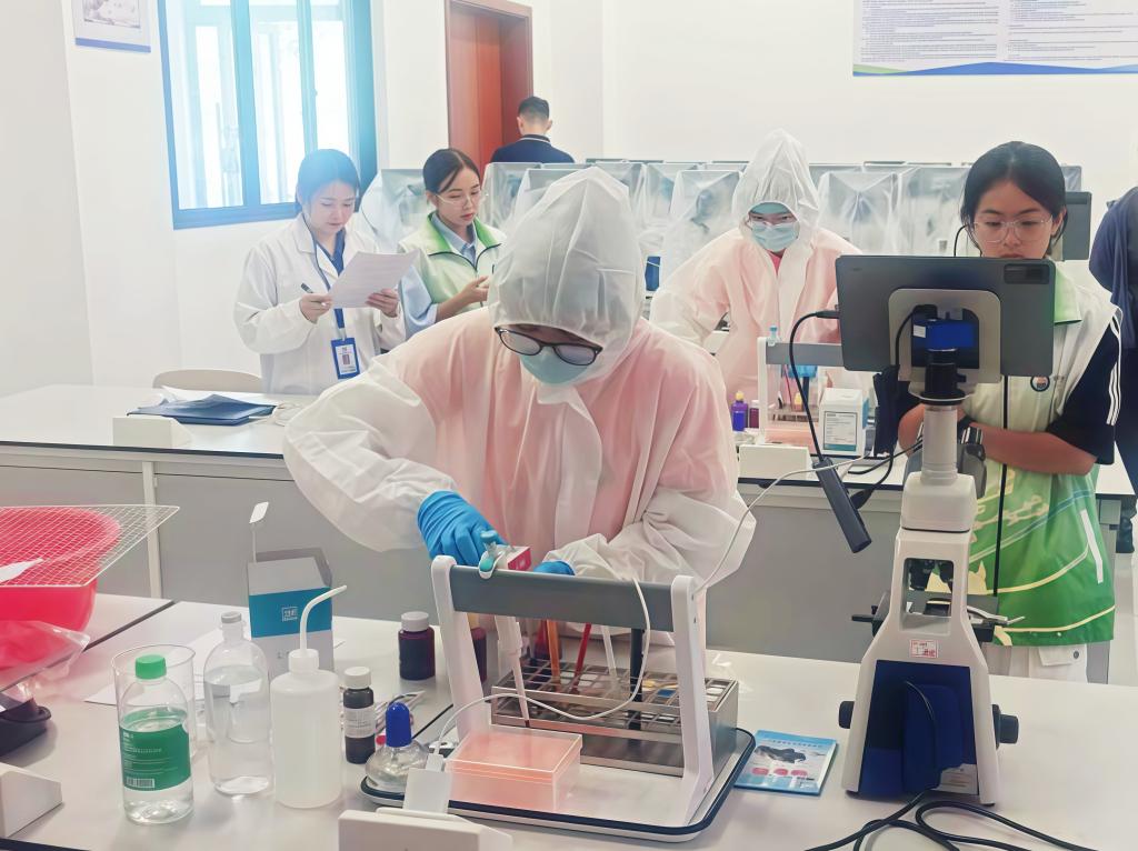 本次比赛采用“理论+实操”双重考核模式,全面考查学生的专业技能与综合应用能力。理论知识竞赛围绕兽医病理学、药理学、临床诊断学等核心课程设置试题,全面考察选手对专业基础知识的理解与运用能力,为实操环节的精准操作奠定基础,践行“理论指导实践、实践检验理论”的赛事举办初衷。实操环节聚焦兽医专业核心技能,设置三大考核项目:鸡翅静脉采血、鸡心脏采血和细菌涂片染色镜检。参赛选手们在操作中展现出扎实的专业基础与良好的职业素养,现场评委则依据操作规范、完成效率与结果质量进行严格打分。温氏股份广西养猪公司为比赛的顺利开展提供了坚实物资保障。