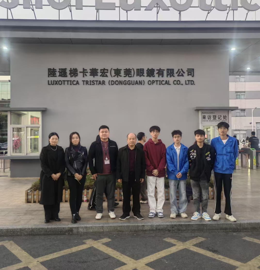在陆逊梯卡华宏(东莞)眼镜有限公司与我院实习生合影