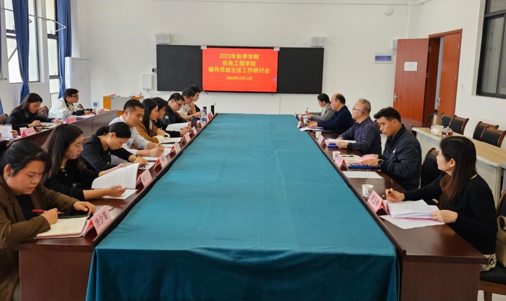 为落实立德树人根本任务,提升辅导员、班主任的管理能力,12月13日下午,机电工程学院召开了2023年秋季学期辅导员班主任工作研讨会。副校长李祖培出席会议,学工部、审计与质量监控处负责人,机电工程学院全体辅导员、班主任,以及各二级学院辅导员代表参加会议。会议由机电工程学院负责人主持。