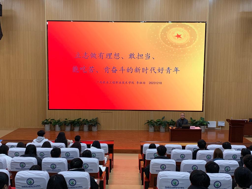 开班仪式后,李祖培以《立志做有理想、敢担当、能吃苦、肯奋斗的新时代好青年》为题作专题党课第一讲,从党的二十大会议召开的背景、主题、核心内容等方面进行了深入的解读,结合职业教育发展前景和青年学生的成长特点,对如何做有理想、敢担当、能吃苦、肯奋斗的新时代好青年进行了生动阐述,对广大青年师生提出殷切期望。
