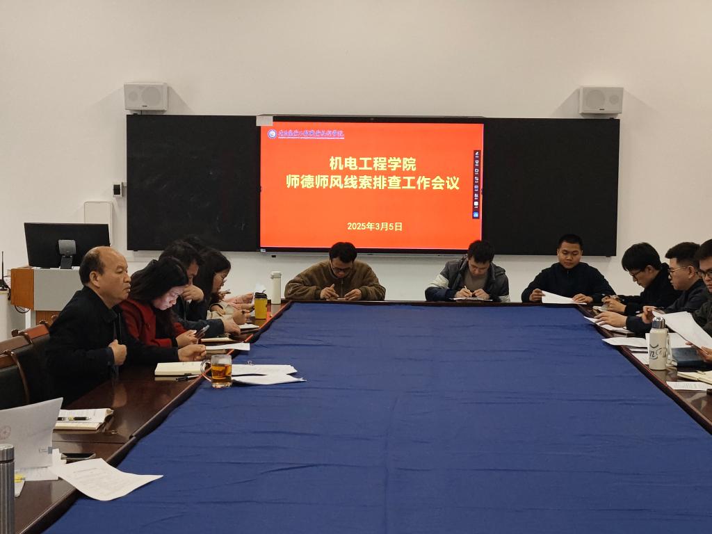 2025年3月5日,机电工程学院在12栋教学楼508会议室召开全体教职工师德师风专项整治工作会议。本次会议由学院负责人陈宏昌主持。会议旨在深入贯彻自治区教育厅关于师德师风专项整治工作的重要指示精神,严格按照《PP电子游戏网站师德师风专项整治工作方案》的要求,扎实有序地推进师德师风个人行为排查工作,进一步规范教师职业行为,强化师德师风建设,营造风清气正的教育环境,为学院的高质量发展奠定坚实基础。