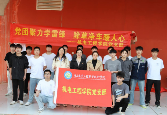 2025年3月21日与26日,机电工程学院党支部联合学院团委分阶段开展“党团聚力学雷锋 除草净车暖人心”主题党日活动,通过组织党员教师、入党积极分子、学生志愿者为教师清洗电动车和清除校园杂草,深入践行党的二十大精神,传承新时代雷锋精神,将理论学习与劳动实践相结合,有效强化党团组织战斗力,深化“党建带团建”工作机制。
