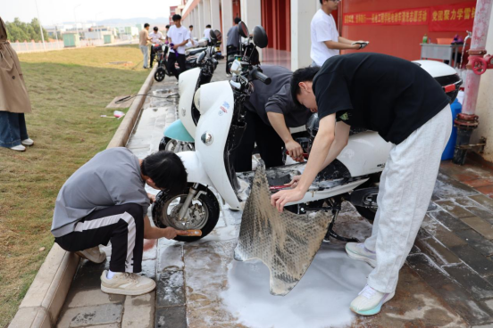 本次活动分为两个阶段。3月21日,志愿者们在12栋教学楼东面空场地为教师提供电车清洗服务。他们分工明确,引导组维持秩序,清洗组严格按照流程作业,物资组保障物资供应,宣传组记录活动瞬间。经过数小时的努力,为教师们带来了便捷与关怀,让教师们在繁忙的工作中感受到来自学生的温暖与敬意。