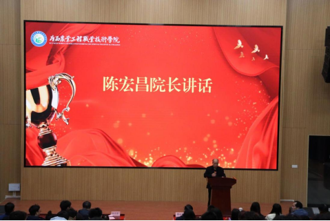 表彰大会伊始,学院负责人陈宏昌向受奖助的同学们致以最诚挚的祝贺。他深情寄语,希望同学们能心怀感恩,珍视这来之不易的机遇,以勤勉奋发之姿,回报党和国家的悉心关怀与培育,勇担社会责任,为社会发展添砖加瓦。陈宏昌总结了机电工程学院过去一年取得的丰硕成果,对全体师生提出三点殷切期望,在新的一年,要继续坚守拼搏奋进的精神内核,无畏艰难,勇攀学术与技能高峰,携手共绘机电工程学院的璀璨新画卷。