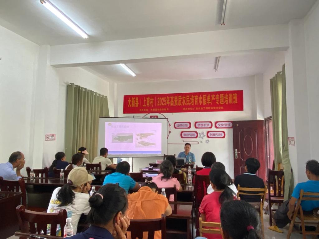 2025年9月16日至28日,大新县高素质农民水稻单产提升专题培训班在上育村顺利举办,为当地水稻产业高质量发展注入新活力。本次培训以提升水稻单产为核心,以知识传递与技术推广为双翼,助力农业现代化进程迈出坚实步伐。