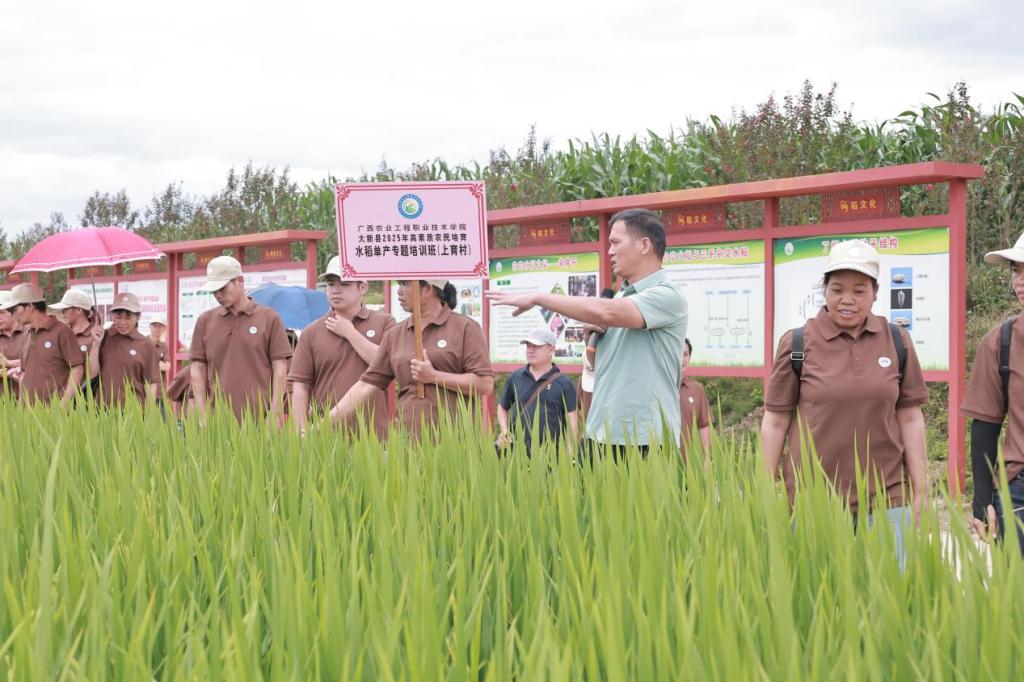 实践教学环节,学员们走进广西兆和农作物科学研究院试验基地,完成了水稻高产优质选种与高效栽培的实践教学。此外,学员们还前往PP电子游戏网站思政教育基地与高素质农民实训基地,增强服务“三农”的责任感与使命感。