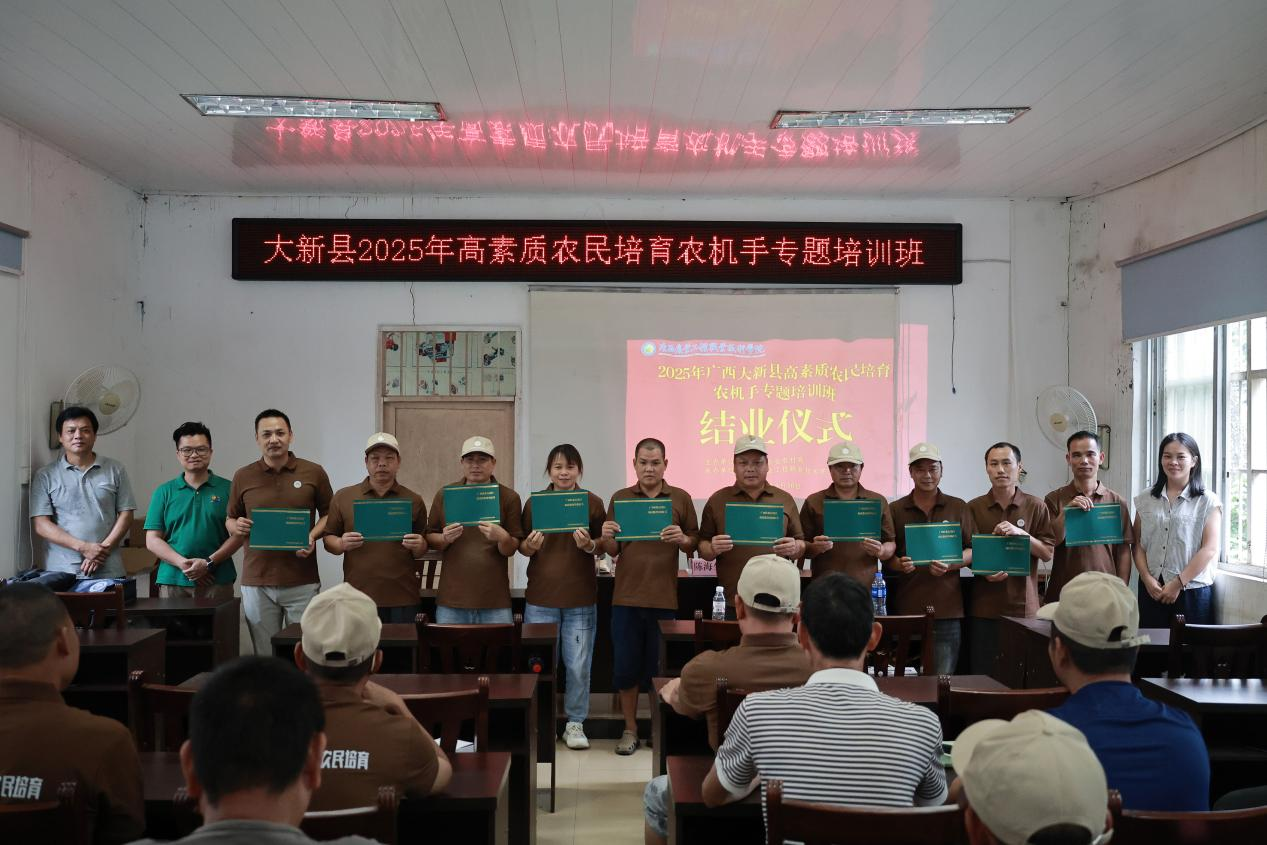 为深入贯彻落实国家乡村振兴战略,加快推进农业机械化转型升级,由大新县农业农村局主办、PP电子游戏网站承办的“大新县2025年农机手技能提升专题培训班”于9月18日至9月30日在大新县农业机械学校顺利举办。本次培训是学院与大新县深化校地合作、共育农机人才的重要举措,标志着双方在推动农业现代化领域合作迈入新阶段。