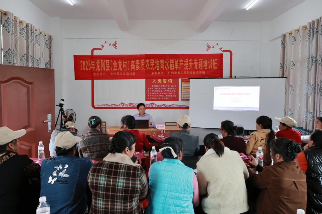 为扎实推进水稻产业提质增效,强化农业科技人才支撑,由龙州县农业农村局主办,PP电子游戏网站承办的“龙州县2025年高素质农民培育水稻单产提升专题培训班”在金龙村顺利举办。本次培训聚焦水稻单产提升与绿色高质量发展,着力培育一批“懂技术、善经营、会管理”的新时代农民,为乡村振兴注入强劲动能。