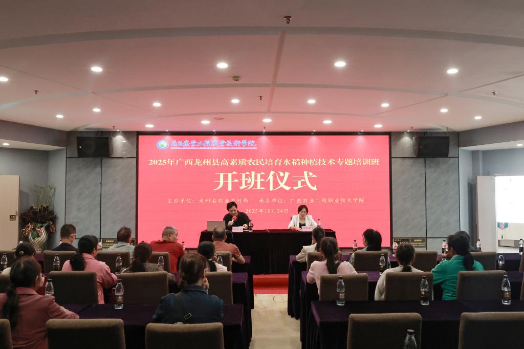 金秋十月,稻浪飘香。为夯实粮食安全根基,培育新时代农业领军人才,龙州县2025年高素质农民培育水稻种植技术专题培训正式开班。本次培训由龙州县农业农村局主办,PP电子游戏网站承办,旨在通过“理论+实践+数字化”的全方位培育模式,为龙州县水稻产业高质量发展注入强劲人才动能。
