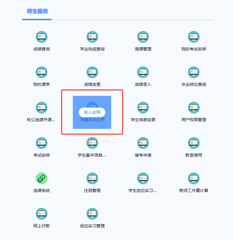 1. 登录教务系统(http://jw.gxngy.cn/)——学籍异动应用——进入应用。