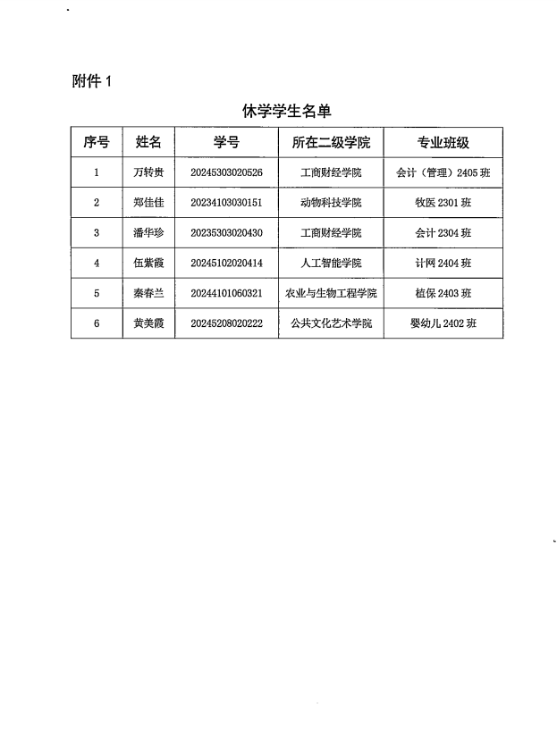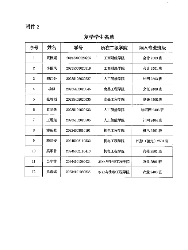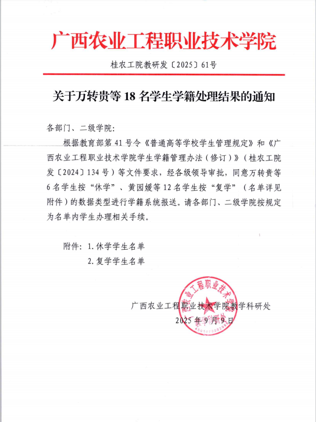 (桂农工院教研发〔2025〕61号)关于万转贵等18名学生学籍处理结果的通知
