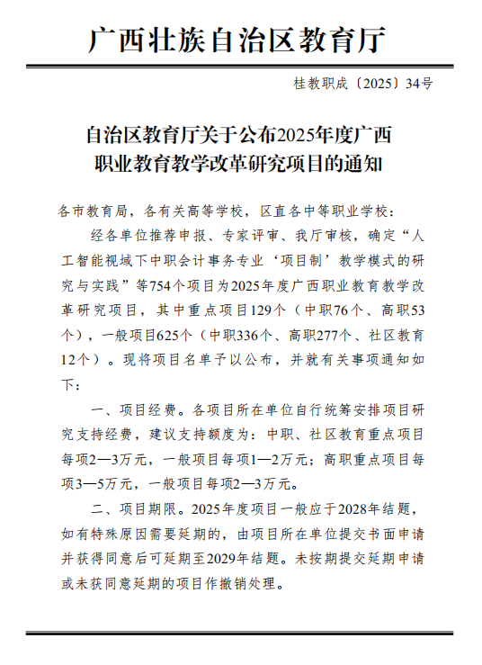 2025年度广西职业教育教学改革研究项目立项公布,PP电子4项课题成功获批