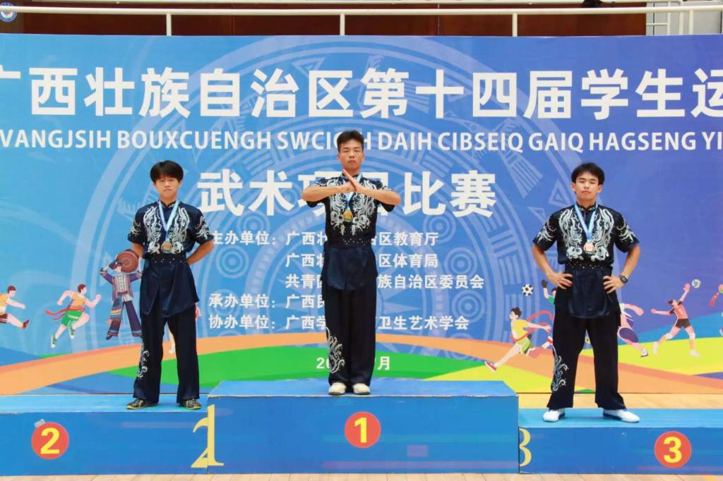 7月6日至8日,在广西民族大学举行的武术项目比赛中,PP电子2023级陆泉同学力压群雄,凭借其在校期间社团表演积累的扎实功底稳定发挥,一举夺魁。武术项目比赛获得1个冠军、1个亚军、1个季军、1个第六名、4个第七名的优异成绩。