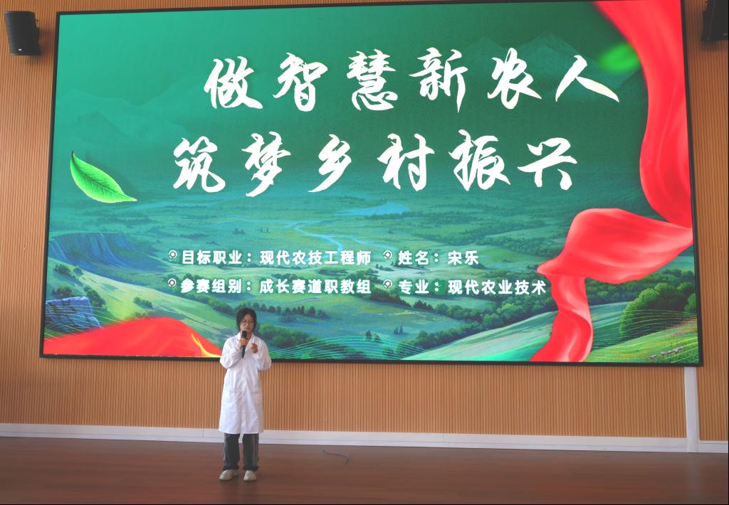 随后,路演比赛正式开始。来自现代农业技术、植物保护与检疫技术、园艺技术专业共计31名参赛选手依次登台,他们围绕个人职业目标、能力分析、发展路径及行动计划等内容,进行 5 分钟路演展示。选手们结合专业特色与行业趋势,以清晰的逻辑、生动的案例和自信的表达,展现了当代大学生对职业规划的深入思考。随后,评委团针对选手的规划合理性、可行性及现场表现进行2分钟提问,选手们沉着应对,与评委展开深度互动。