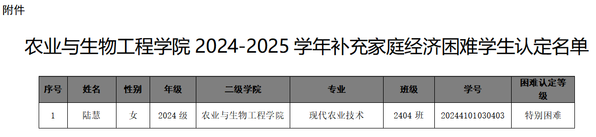 附件:农业与生物工程学院2024-2025学年补充家庭经济困难学生认定名单
