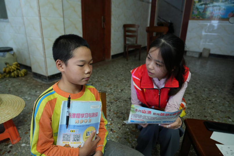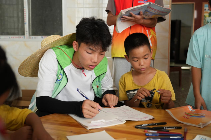 下午,服务团走进农户家中,对当地农户宣传防溺水安全与防诈骗安全教育,同时,还对黎亮村的小学生进行暑假作业辅导,提高当地学生的知识与认知,并鼓励他们好好学习,争当新时代的接班人。