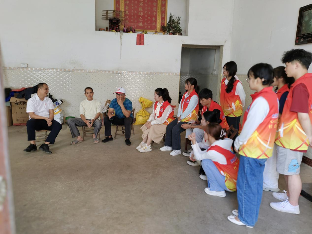 图为实践团队员与村里老人交谈