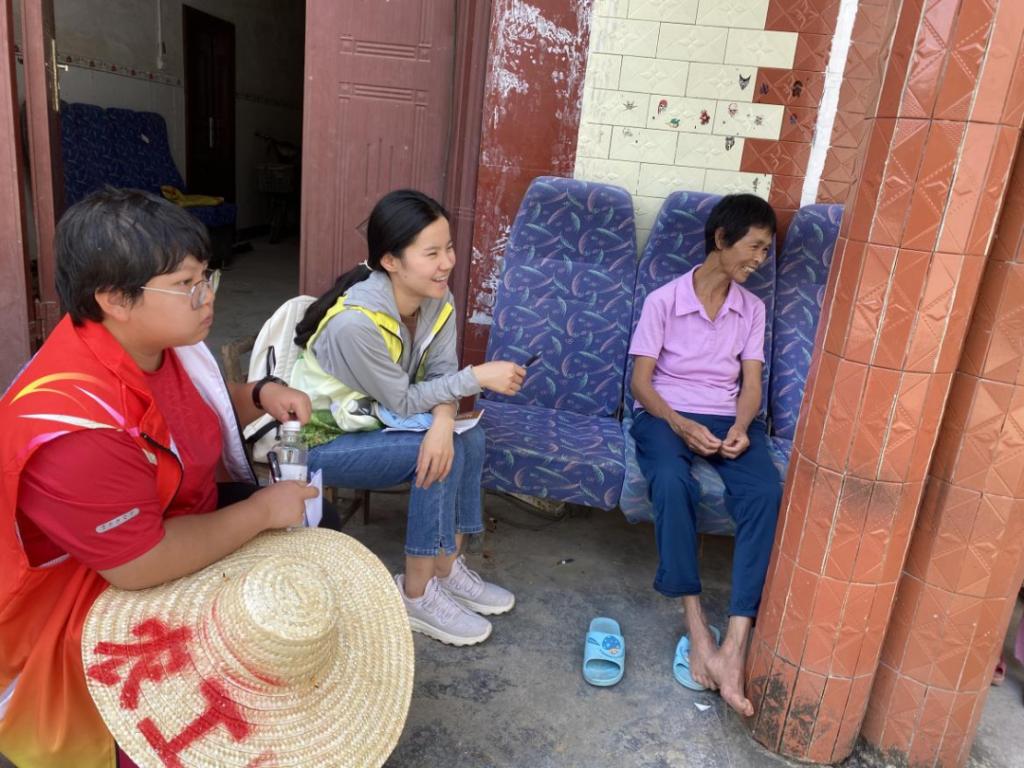 图为实践团队员陪老奶奶聊天