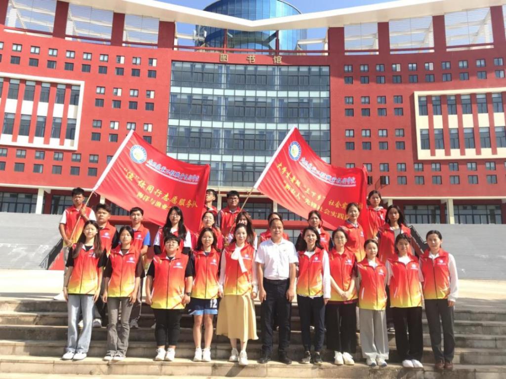 图为实践团队员与黎亮小学学生的合影