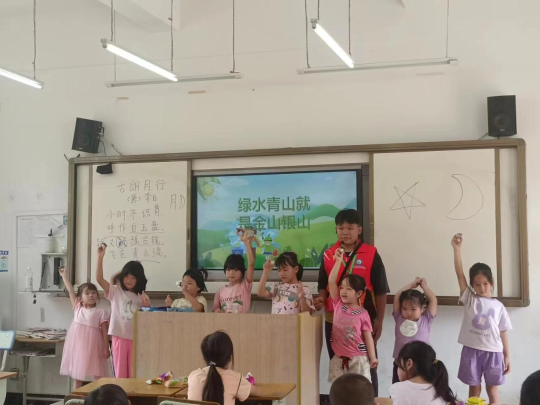 图为实践团队员倡导小朋友们爱护环境
