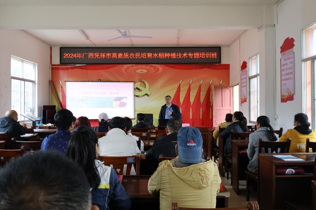 2024年秋季学期,农业与生物工程学院李文副教授深入天等县、凭祥、宁明县、大新县等县的各乡镇,开展“科技助农·振兴乡村”系列技术培训活动。通过深入二十多个乡村,三十余场次的授课,累计培训高素质农民1530人,为当地农业现代化注入新动能。