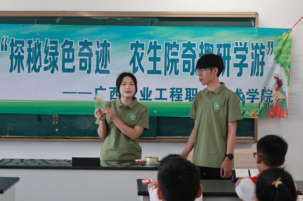 2025年5月23日上午,农业生物与工程学院举办“奇趣研学游”活动,带领90余名小学生走进现代农业科技的世界。从神秘昆虫标本到无土栽培大棚,从创意手工实践到田间课堂探索,孩子们在16名大学生志愿者的带领下,开启了一场融合科技、生态与劳动的绿色探秘之旅。