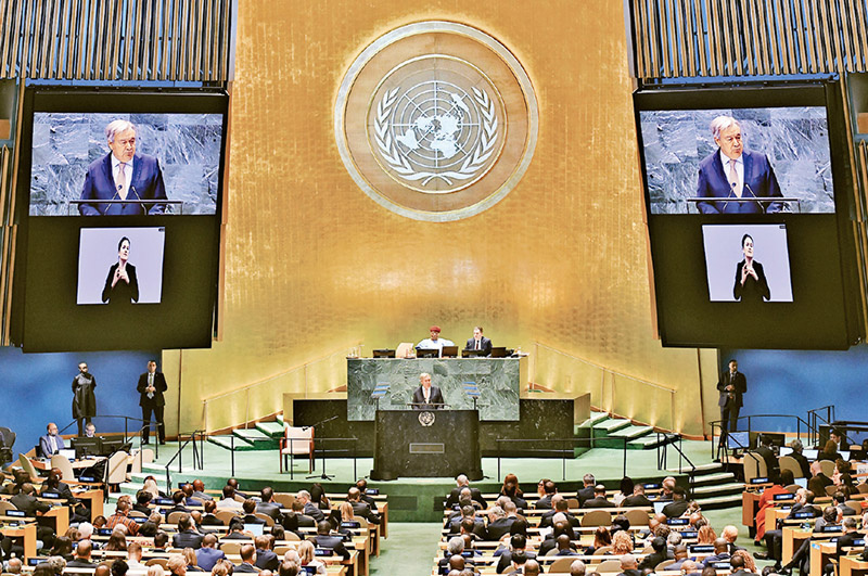 安全、和平、公正、平等、包容、可持续和繁荣的世界。图为9月22日拍摄的峰会现场。新华社记者 李睿/摄