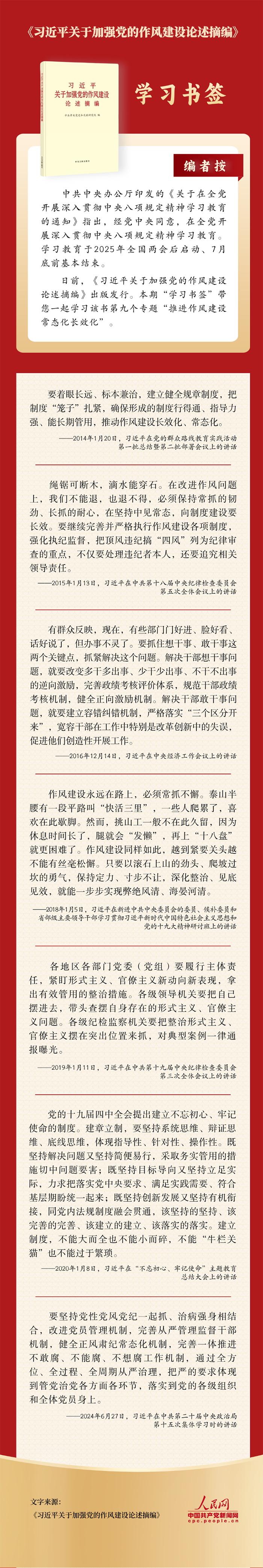 学习书签丨推进作风建设常态化长效化