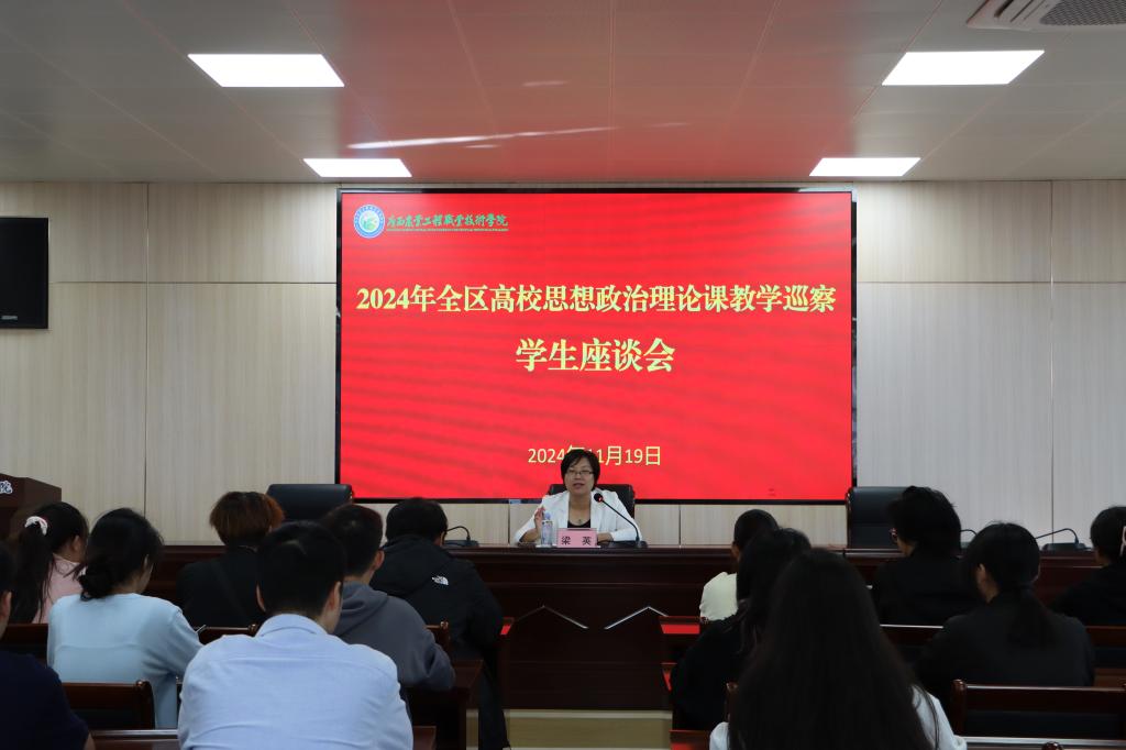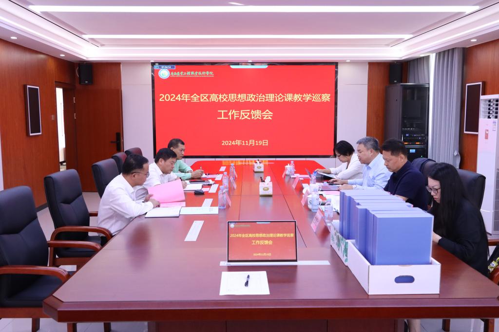11月19日上午,以广西民族大学党委副书记陈铭彬为组长的2024年全区高校思想政治理论课教学巡察组到PP电子开展巡察暨听课指导工作。学校党委副书记、校长李振科,副校长莫嘉凌,总会计师韦炜出席思政课教学巡察汇报会。马克思主义学院及学校相关职能部门负责人、思政课教师代表、学生代表参加了相关活动。