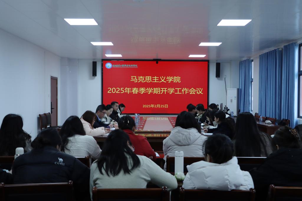 2025年2月25日,马克思主义学院在行政楼3楼会议室召开2025年春季学期开学工作会议暨集体备课会。会议由学校党委宣传部部长、马克思主义学院负责人乐波灵主持,全体教师参加会议。