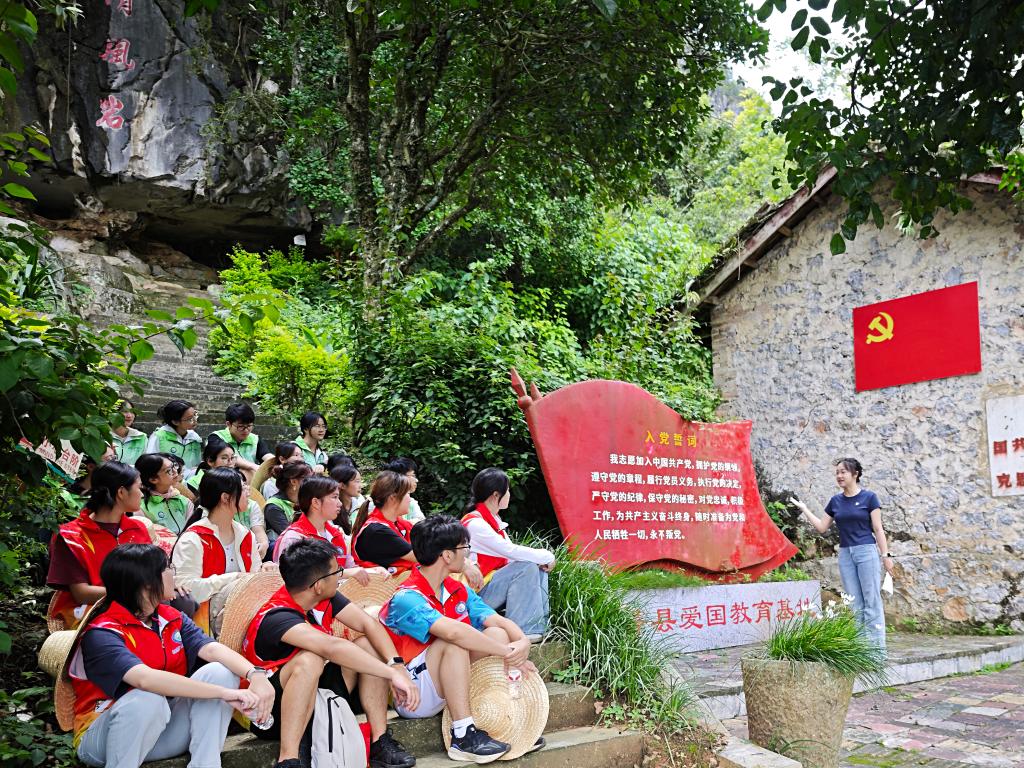 颜佳慧老师与学生在天等县爱国教育基地学习