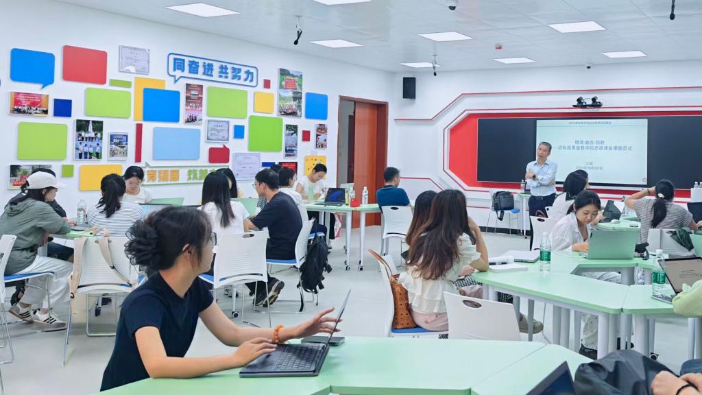 会上,江教授结合理论框架与鲜活案例,提出“教材解构-重构-活化路径”“三维学情分析法”等创新策略,并现场演示“AI教学助手”“学情智能分析平台”等数字化工具的应用场景。教师们通过沉浸式互动体验,深入学习课件规范制作、人工智能赋能课堂设计等实操方法,现场交流热烈,反响积极。