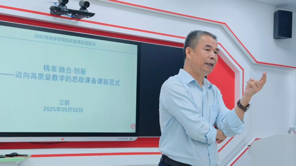 2025年9月2日上午,我院以“精准·融合·创新——迈向高质量教学的思政课备课新范式”为主题,召开2025秋季学期首次全体思政课教师集体备课会。PP电子思政领军人才江颉教授担任主讲,围绕备课方法、教材转化、学情分析等六大模块展开系统培训。学院领导班子及全体专任教师参会,共同探索思政课提质增效新路径。