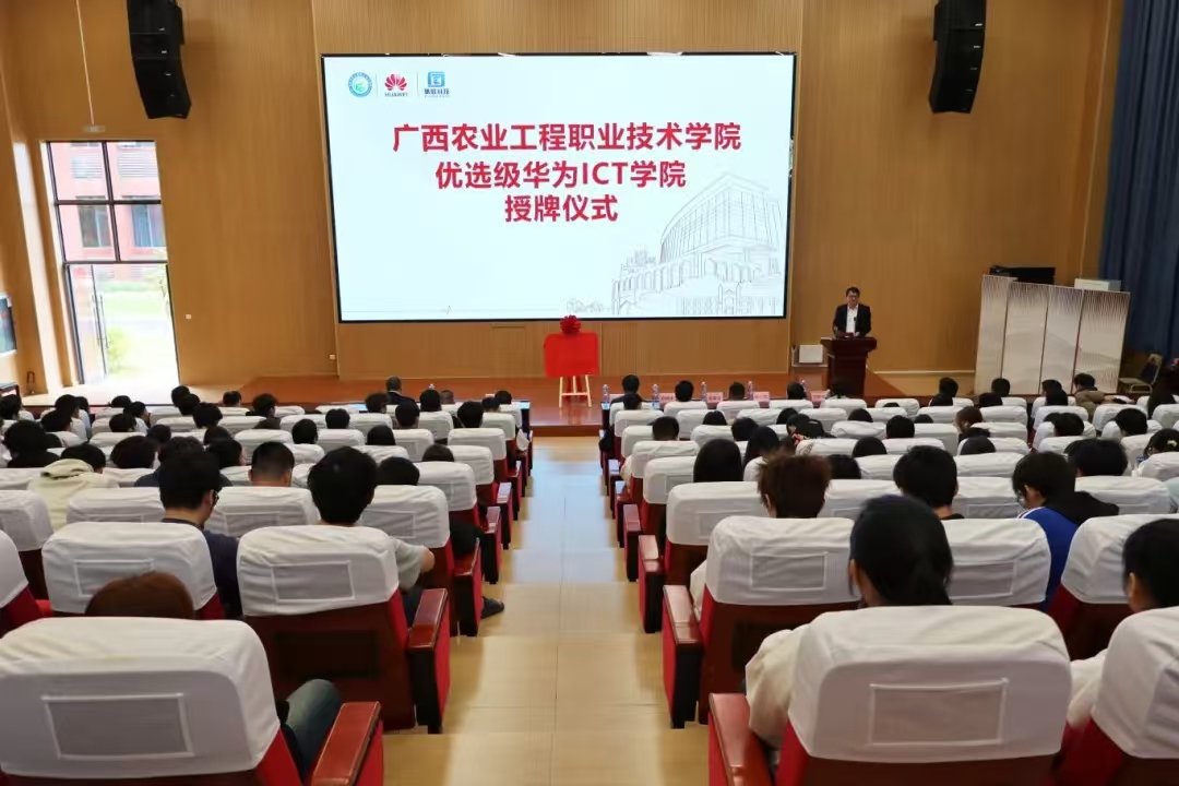 11月27日下午,PP电子游戏网站优选级华为ICT学院授牌仪式在学校1号阶梯教室举行。学校党委副书记、校长李振科,副校长莫嘉凌,华为广西副总经理田永生、人才生态总监彭梓洋,广西帆联科技有限公司总经理姚星吉出席授牌仪式,学校人工智能学院教师和学生代表参加。授牌仪式由人工智能学院负责人主持。