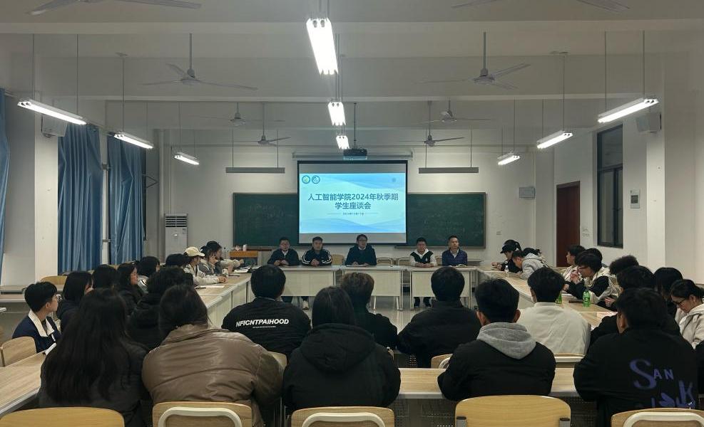为全面了解掌握学生的思想、学习、生活等方面的情况, 人工智能学院在12月11日晚召开学生座谈会,学院负责人、专业负责人、辅导员、班主任及相关教师和各班级学生代表参加会议。