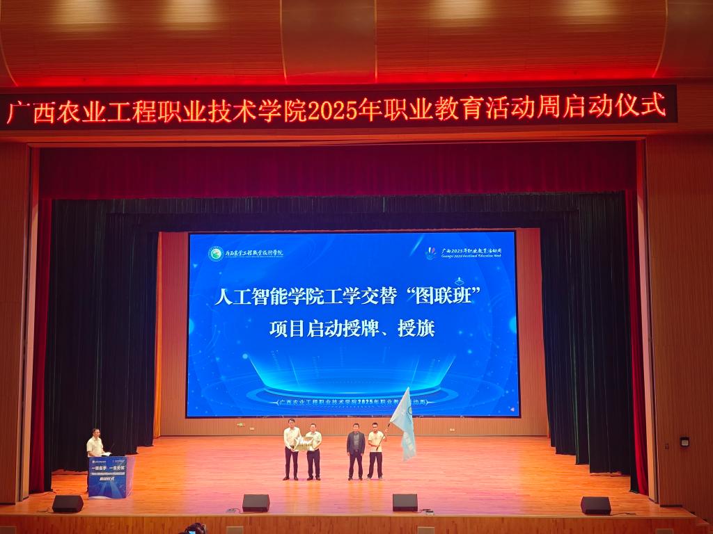 启动仪式现场,企业代表向“图联班”授牌和授旗,鲜红班旗象征对人才培养的殷切期望。