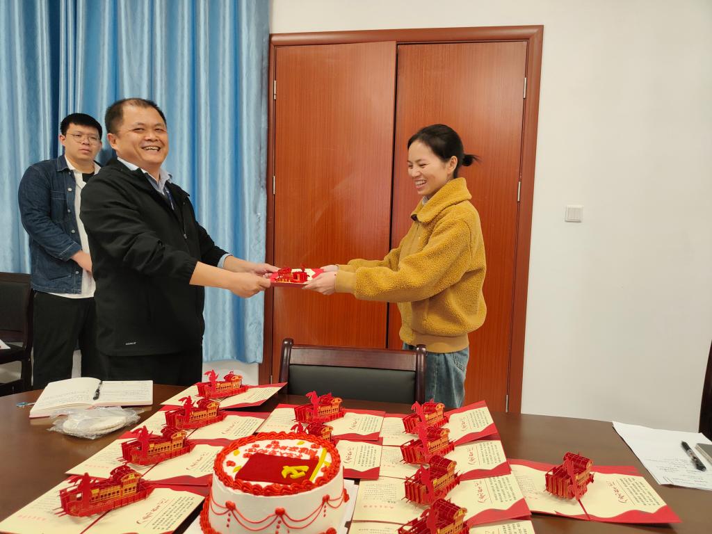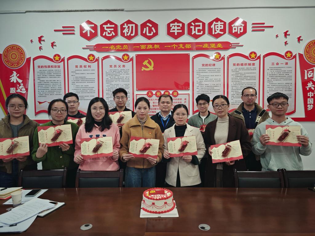 支部书记张东莓带领全体党员重温入党誓词,并为党员颁发政治生日贺卡。通过政治生日活动,党员回顾自己的入党誓词和入党动机,确保在任何时候都保持对党的忠诚,增强组织观念,永葆党的先进性和纯洁性。