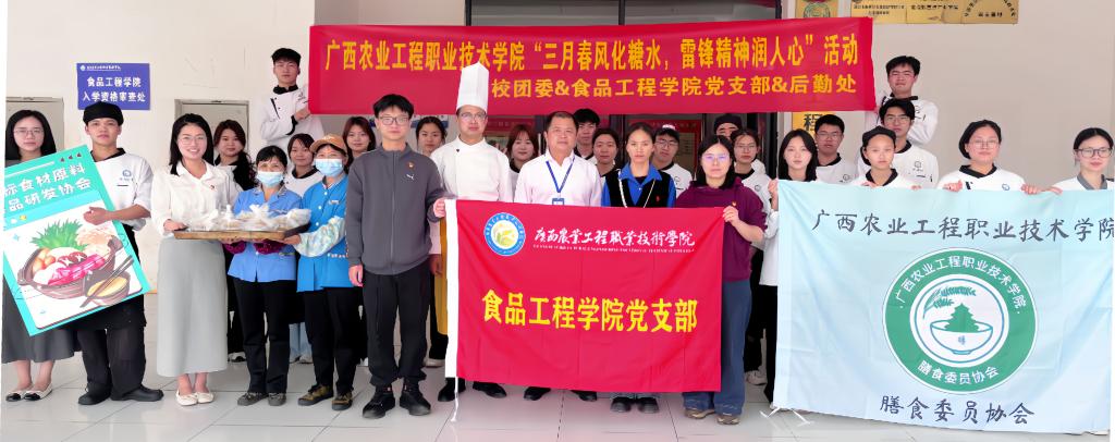 为深入贯彻落实党的二十大精神,铸牢中华民族共同体意识,深化民族团结进步教育,支部党员教师带领学院2023级、2024级共16个班制作壮族五色糯米饭、青团、白糕等20余种民族特色美食,助力学校“铸牢中华民族共同体意识,各族师生一家亲”2025年三月三活动顺利开展,架起了各族师生情感交融的桥梁,生动诠释了敬业实干的雷锋精神。