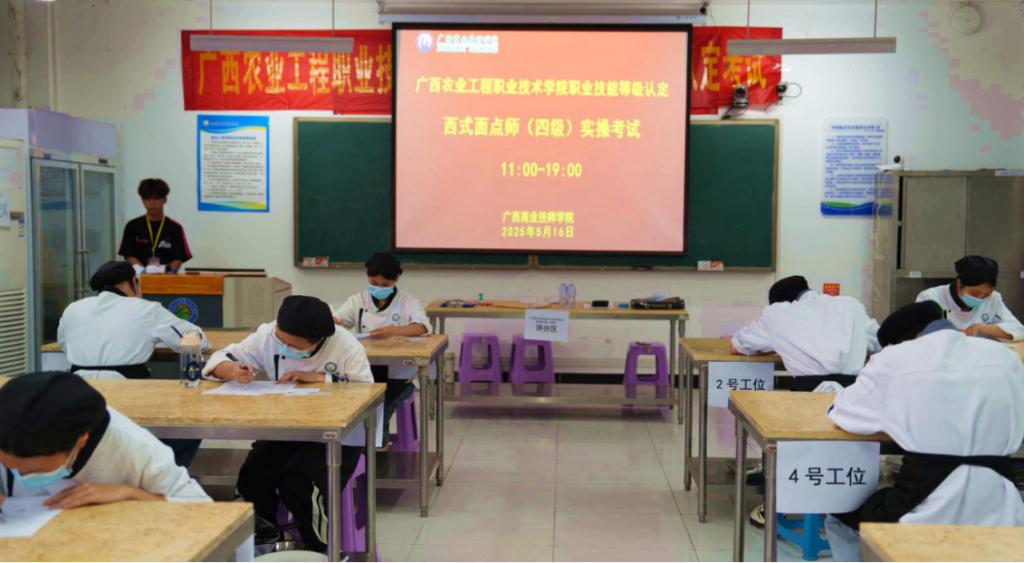 2025年5月16日,正值学校职教周活动期间,食品工程学院2023级烹饪工艺与营养专业中级西式面点师职业资格证书考证在学院烹饪实训基地正式启动。本次考证作为食品工程学院职教周“一技在手, 一生无忧”主题活动的重要环节,旨在检验学生专业技能水平,推动“岗课证赛”融合,助力高素质技术技能人才培养。
