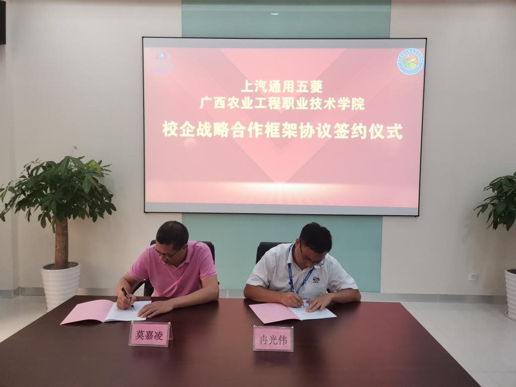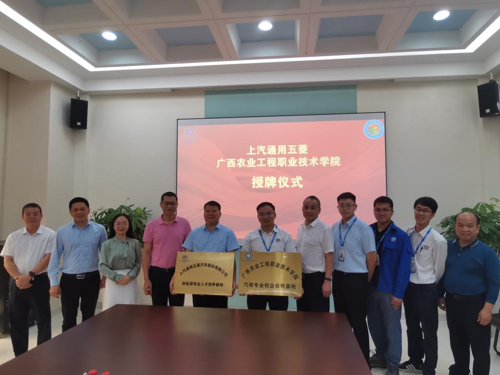 调研第二站是上汽通用五菱汽车股份有限公司,调研组一行在公司人力资源部经理冉光伟的陪同下,参观了企业展厅。随后在会议室就推进产学研用、人才培养深度融合,实现校企资源的有机结合和优化配置等方面进行交流座谈,并签订了校企合作框架协议,举行新能源专业人才培养基地、汽修专业校企合作基地授扁仪式。