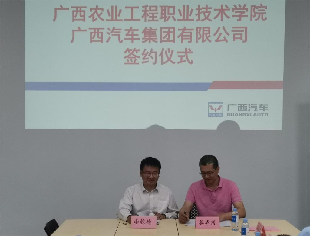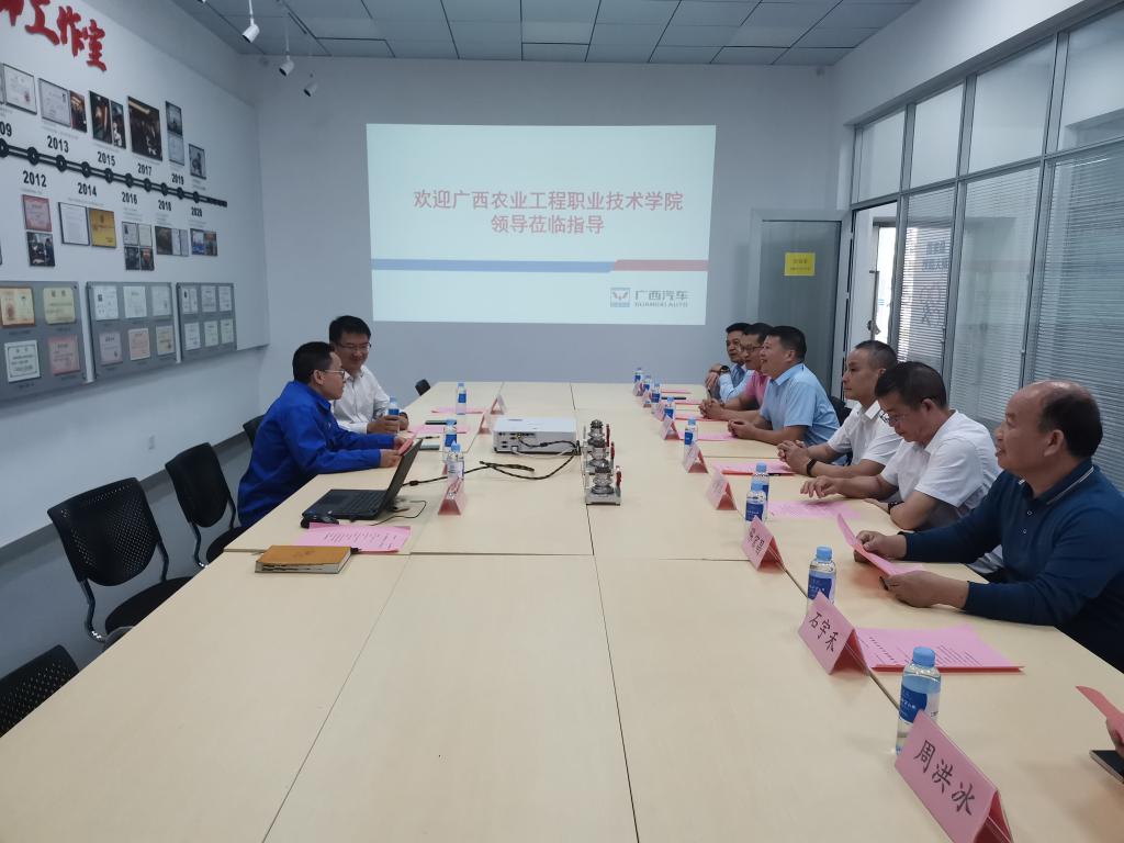 此次调研的第一站是广西汽车集团有限公司,广西汽车集团人力资源总监李钦德,全国五一劳动奖章获得者、全国技术能手丘柳滨大师,校企合作经理、工匠基地副院长何卓勋热情接待调研组。调研组实地参观后与企业负责同志开展了交流座谈,校企双方就校企合作、产教融合、人才培养、教学科研等方面达成一致。并签订了校企合作框架协议,举行汽修专业校企合作基地授扁仪式。