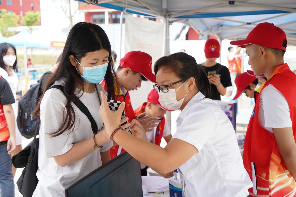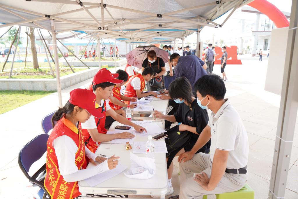 在志愿者和工作人员的引导下,报到现场井然有序,顺利完成各项报到手续。在校门口、咨询服务点、报到处、新生宿舍,随处可以看到师生们忙碌的身影,为新生及家长提供校园引导、报到咨询、行李运送等服务。