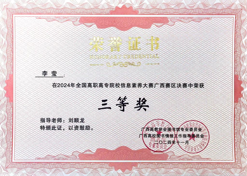 全区共有27所高职高专院校近1887名选手参赛,在激烈的竞争中,PP电子韦海珍、李莹、蒋泽雨三名同学荣获三等奖,覃美嫩同学荣获优秀奖。