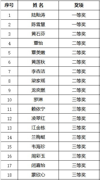 本次大赛PP电子共有66名学子报名参赛,经综合评定,校级选拔赛共评出一等奖2名、二等奖7名、三等奖9名、优秀奖15名,具体名单公布如下: