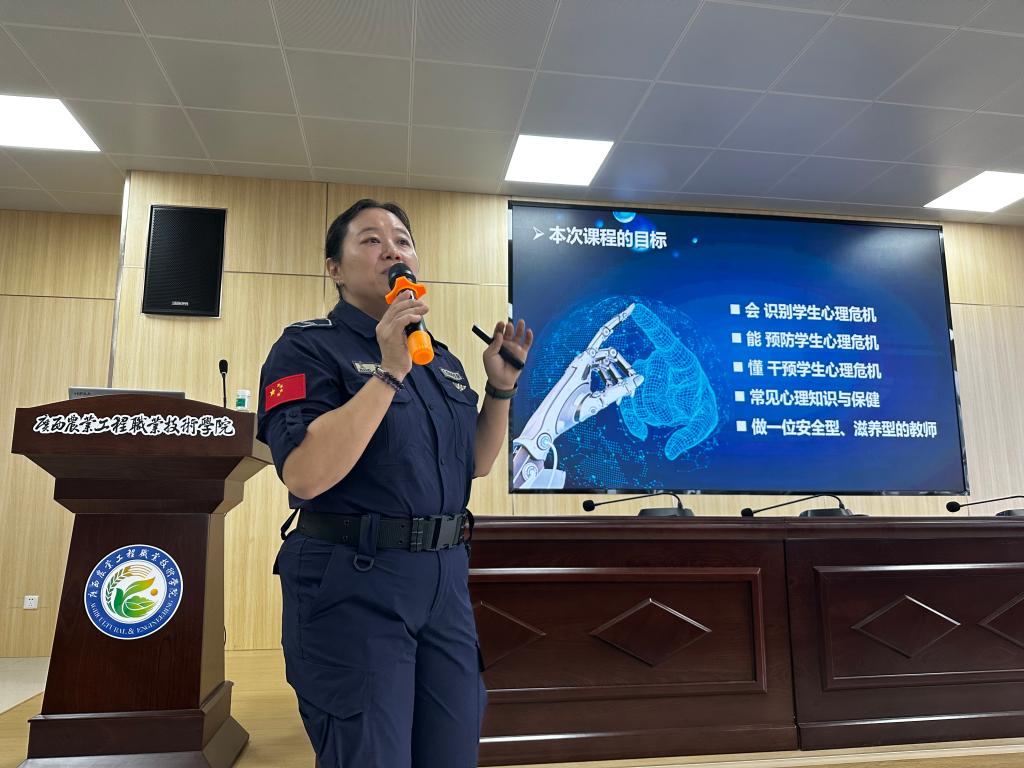 根据《自治区农业农村厅办公室关于举办厅属院校心理健康教育培训班的通知》的要求,为提升PP电子心理育人质量,提高学生个人极端事件风险防控水平。11月19日早上,自治区农业农村厅委派蓝盾心理救援中心讲师团队到PP电子开展“学生群体心理危机预警及常见心理问题”专题培训。培训由学生工作处冯钊处长主持,学校辅导员、班主任、学生工作处工作人员共60人参加培训。