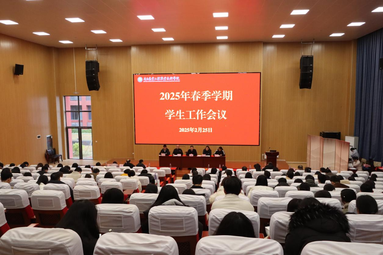 2月25日下午,学校在2号阶梯教室召开2025年春季学期学生工作会议。学校党委副书记、校长李振科,党委副书记、纪委书记黄仁望,副校长李祖培出席会议。学工处、校团委全体成员,各二级学院负责人、团委负责人、学工助理、辅导员及班主任参加会议。会议由副校长李祖培主持。