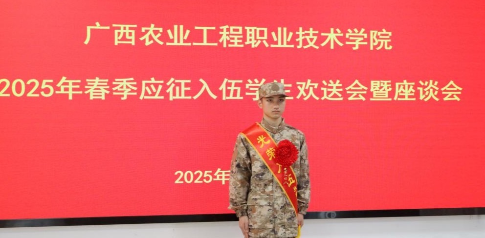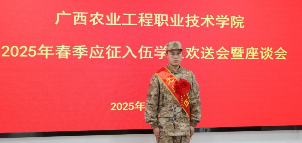李振科代表学校党委和全体师生向应征入伍的同学表达衷心祝贺,并感谢扶绥县人民武装部对PP电子征兵工作的支持。他对入伍同学提出了四点期望:一要铸牢忠诚之魂,希望入伍同学始终听党指挥,把“绝对忠诚、绝对纯洁、绝对可靠”融入血脉,做党和人民的忠诚卫士。二要苦练胜战之能,作为大学生士兵,要发挥专业优势,在信息化、智能化训练中勇当先锋,争做“科技强军”的实践者。三要永葆奋斗之志,以“一不怕苦、二不怕死”的战斗精神,在艰苦环境中磨砺意志,在平凡岗位上创造不凡。四要传承母校之魂,作为农工院的学子,当牢记“崇德尚学,精技为农”的校训精神,无论走到哪里,都要以“农工人”的标准要求自己,用实际行动为母校增光添彩!