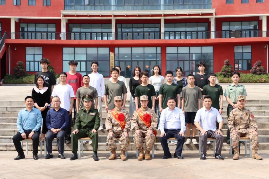 应征入伍学生覃兵代表2025年春季入伍同学庄严承诺:我们选择军营,是因为深知强国必须强军,军强才能国安!我们带着知识入伍,更要做到以专业服务强军,用热血书写忠诚!