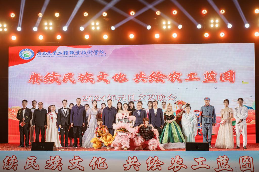 为弘扬中华优秀传统文化,展现PP电子多姿多彩的校园生活,12月28日,PP电子在运动场举办了“赓续民族文化 共绘农工蓝图”元旦文艺晚会。学校领导班子,各部门、二级学院负责人出席晚会,全体师生到场观看,共同庆祝2024年的到来。