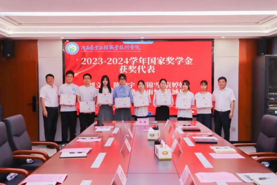 马敏(左一)、李振科(右一)为2023-2024学年国家奖学金获得者代表进行颁奖。